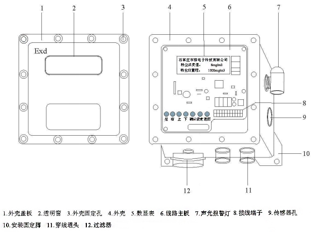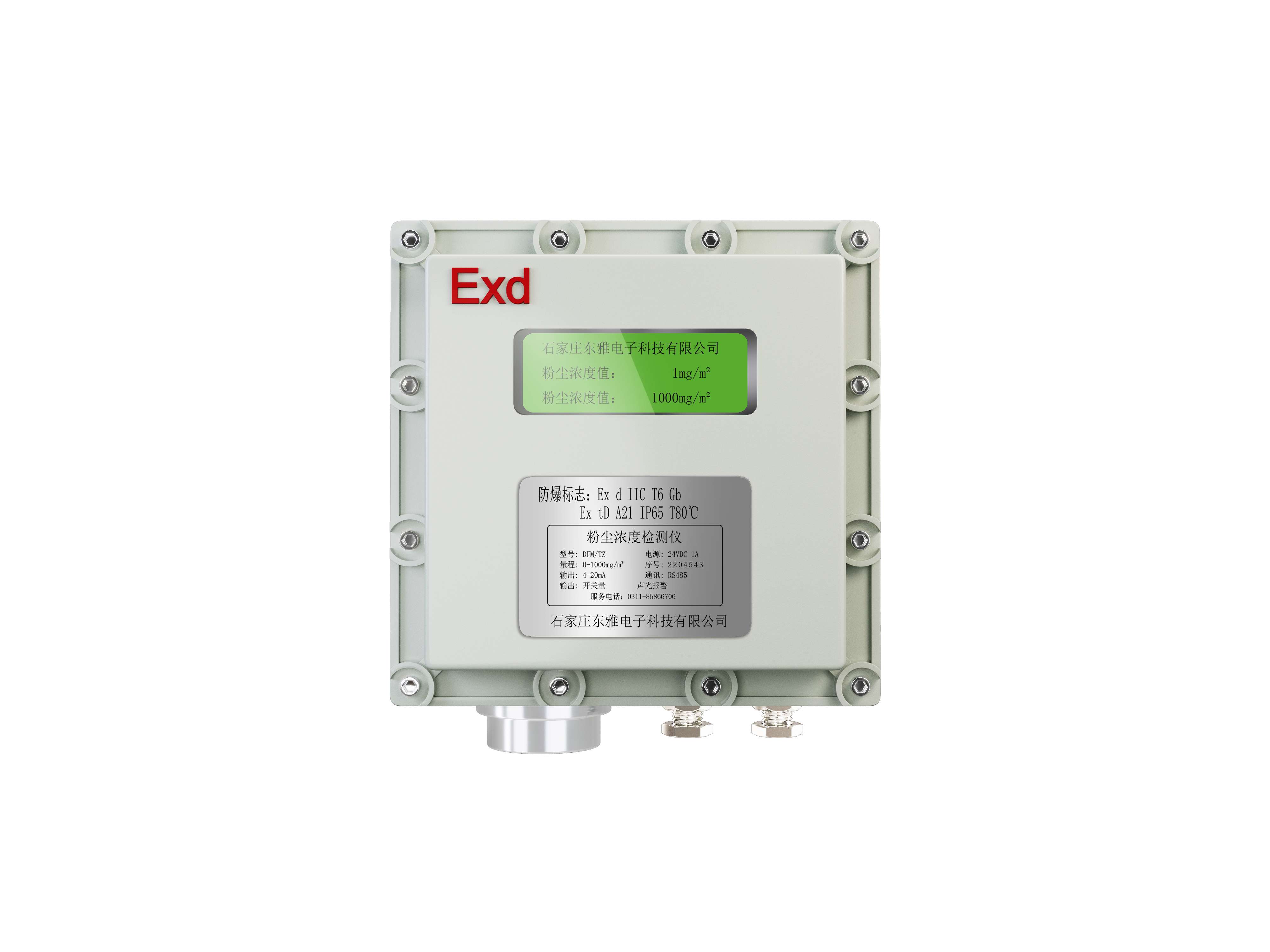 石家莊東雅電子科技有限公司研發的DTM-G2422粉塵濃度檢測儀,儀器為一體式設計,包括粉塵傳感器、連接桿、變動器部分、數字顯示。DTM-G2422